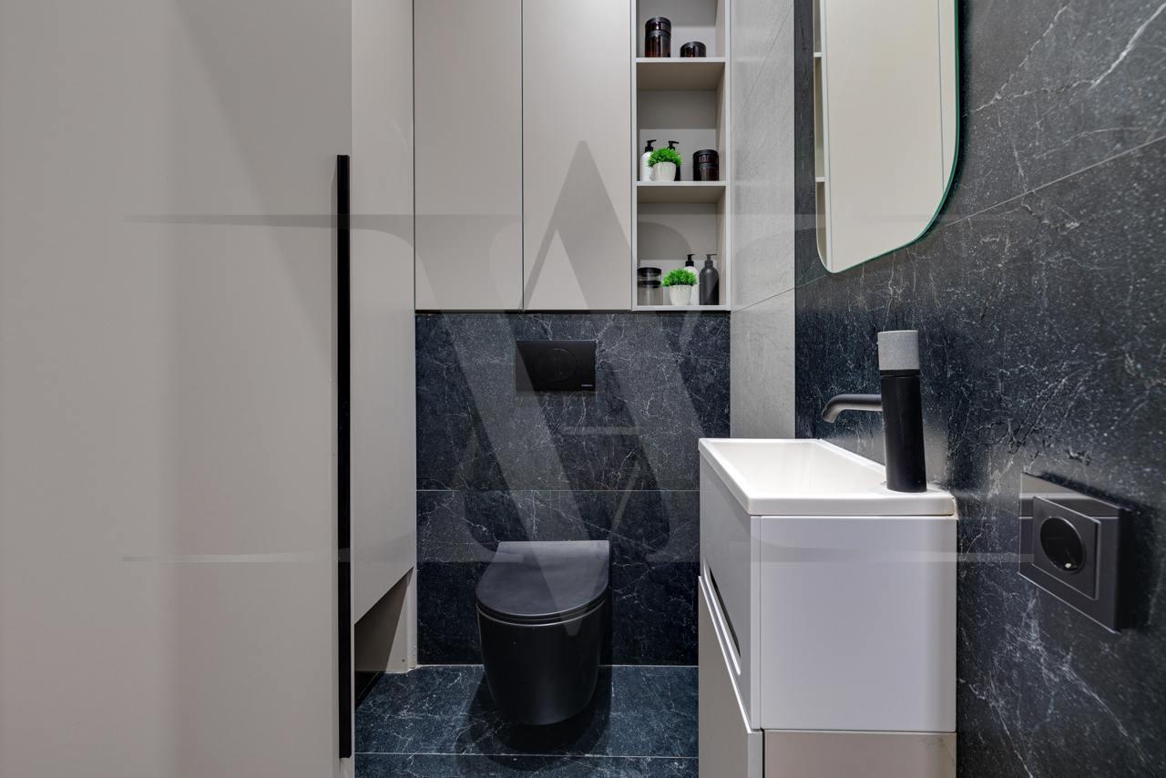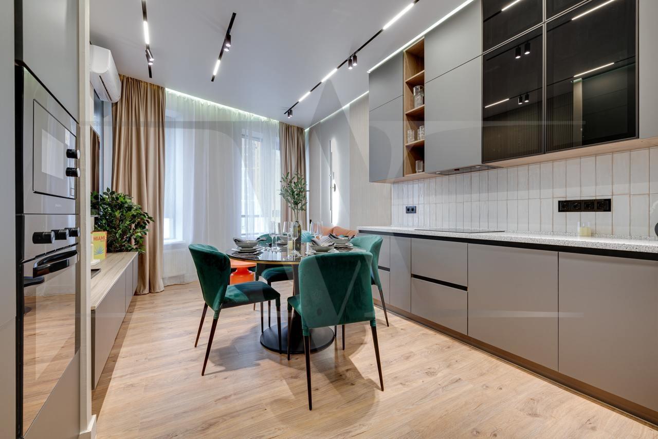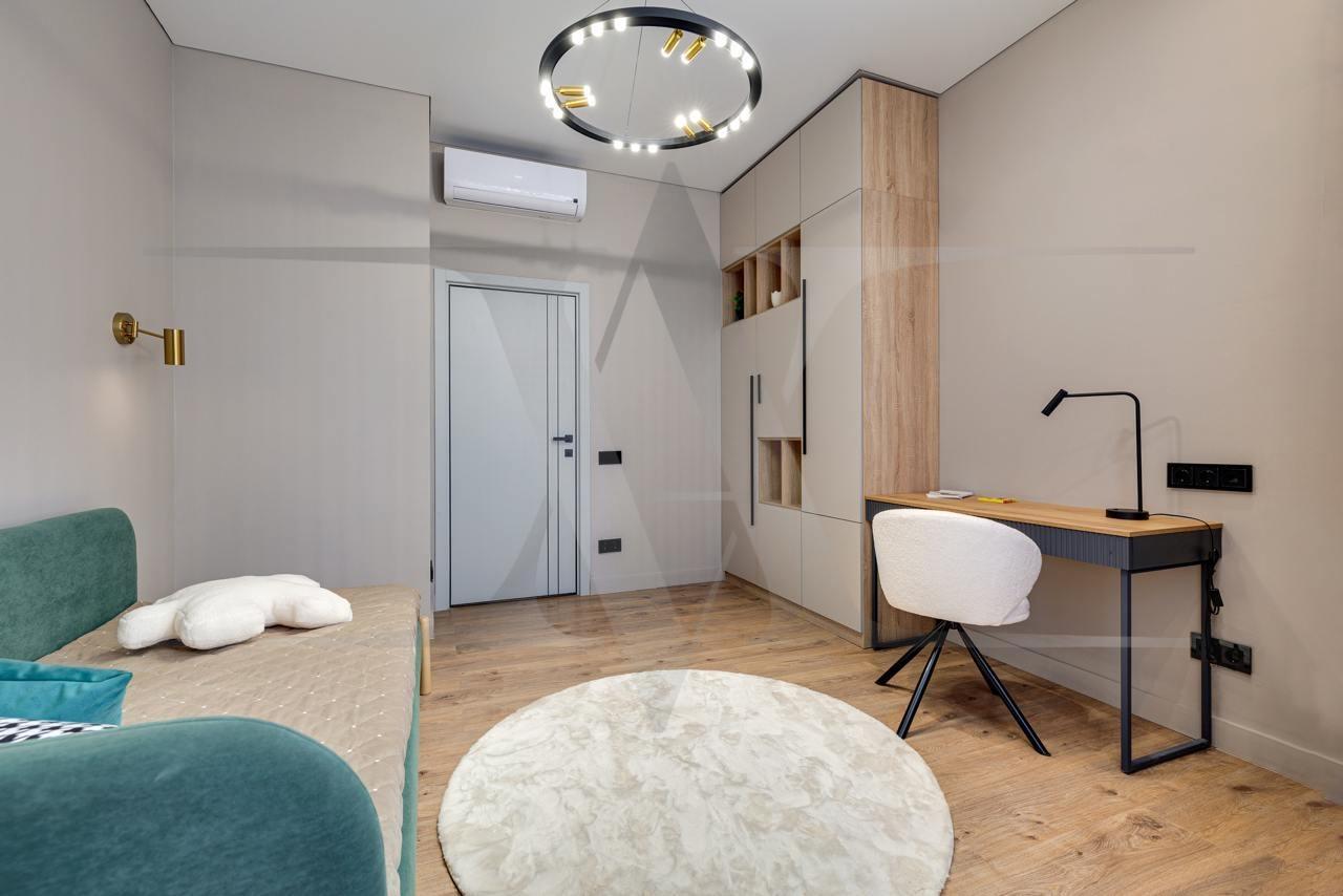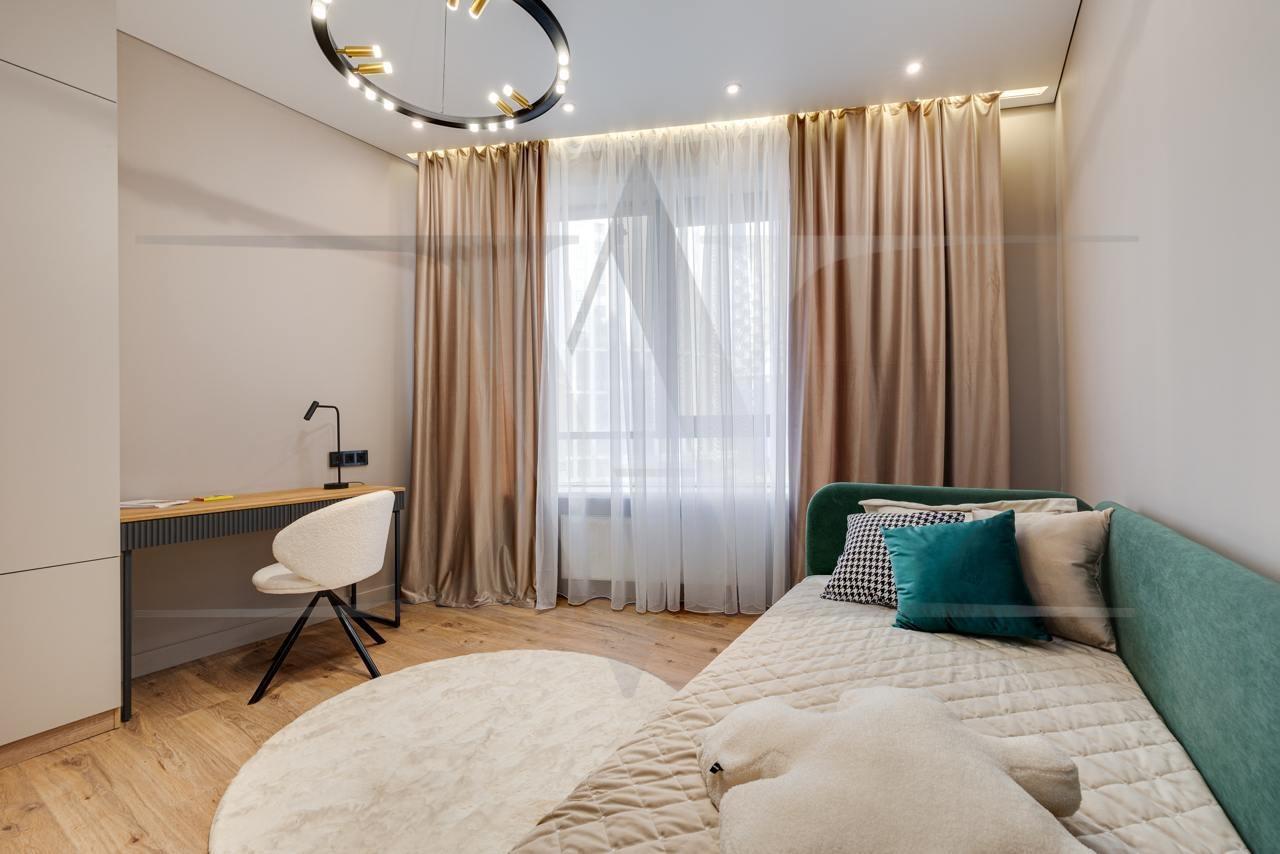 Ремонт выполнен по индивидуальному дизайн-проекту с использованием качественных современных материалов: экологичная французская краска для стен. Выполнены несколько сценариев освещения (карнизная подсветка, споты, освещение зоны TV, подшторная подсветка) в которых преобладают люстры итальянского бренда Odeon Light.