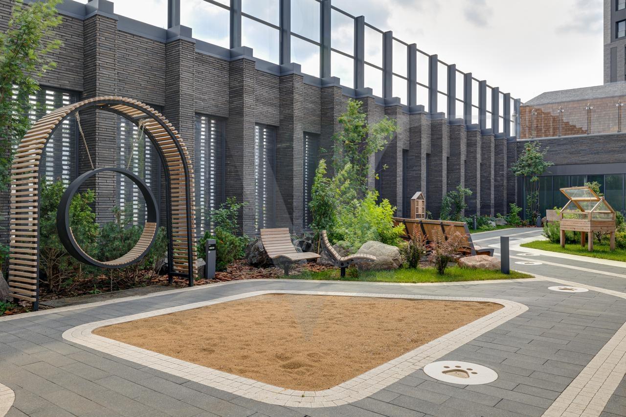 Инфраструктура: Проект расположен на Симоновской набережной в непосредственной близости к воде. Такое место гарантирует атмосферу уединённого острова, сохраняя возможность быстрого доступа к эпицентру активной жизни. На первых этажах его корпусов запланированы кафе, супермаркет, фитнес-рум и компании сферы услуг.