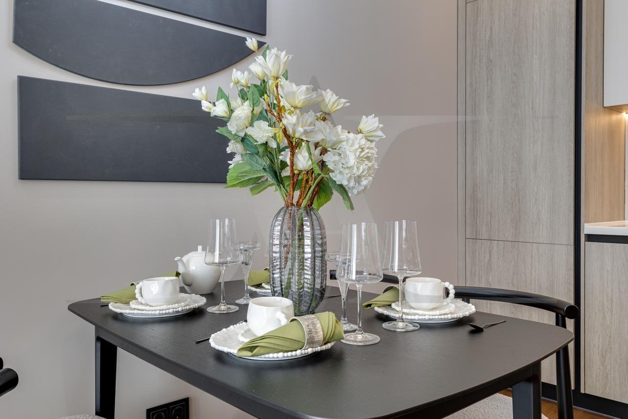 Квартира с новой мебелью, кухонным гарнитуром и техникой. Планировка: кухня-гостинная, две изолированные спальни, два санузла. Высота потолков 3 метра.