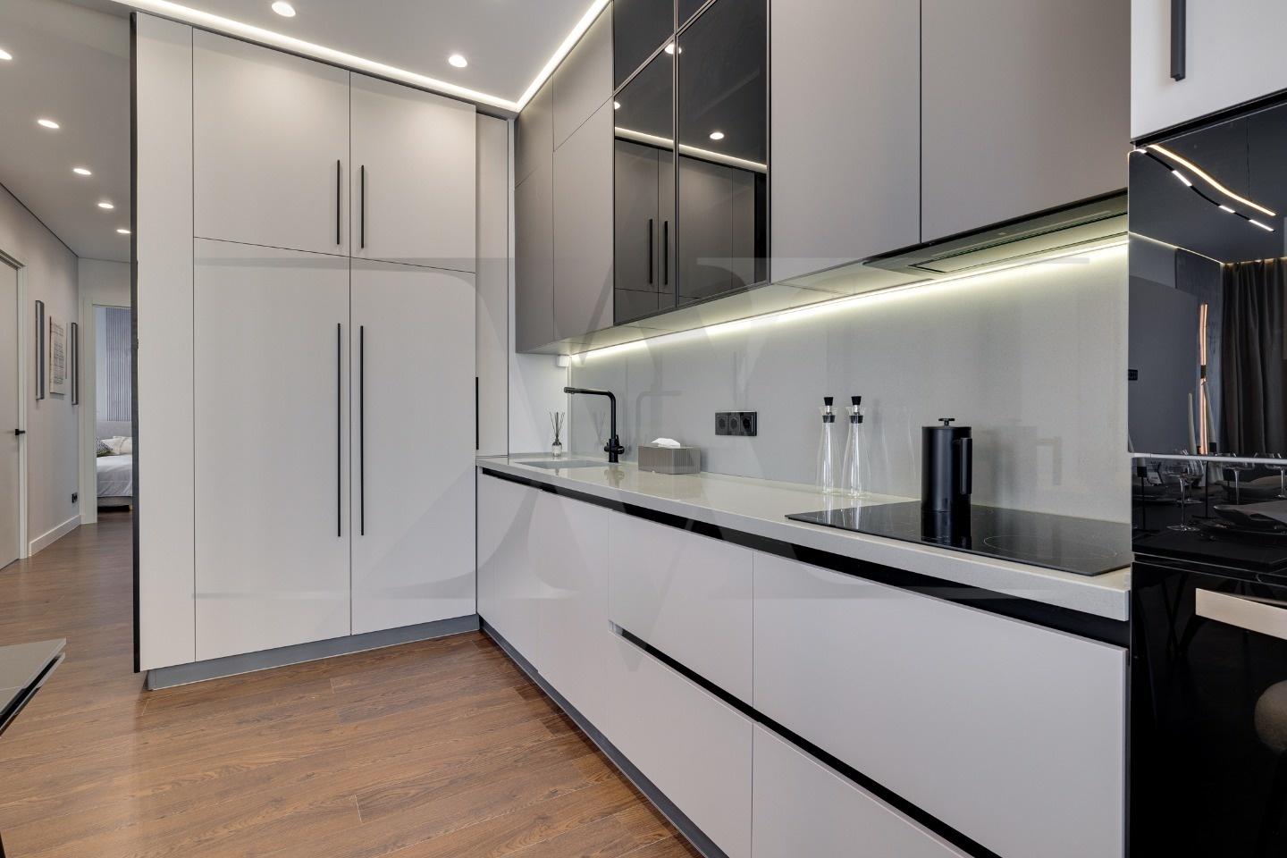 Авторский ремонт квартиры от разработки проекта до полной реализации, выполнен в студии дизайна "Design Alliance". Командой Design Alliance разработана максимально эргономичная планировка, а также детально продуман сценарий освещения в квартире. Все работы выполнены под ключ, включая авторский надзор на объекте и меблировку квартиры.