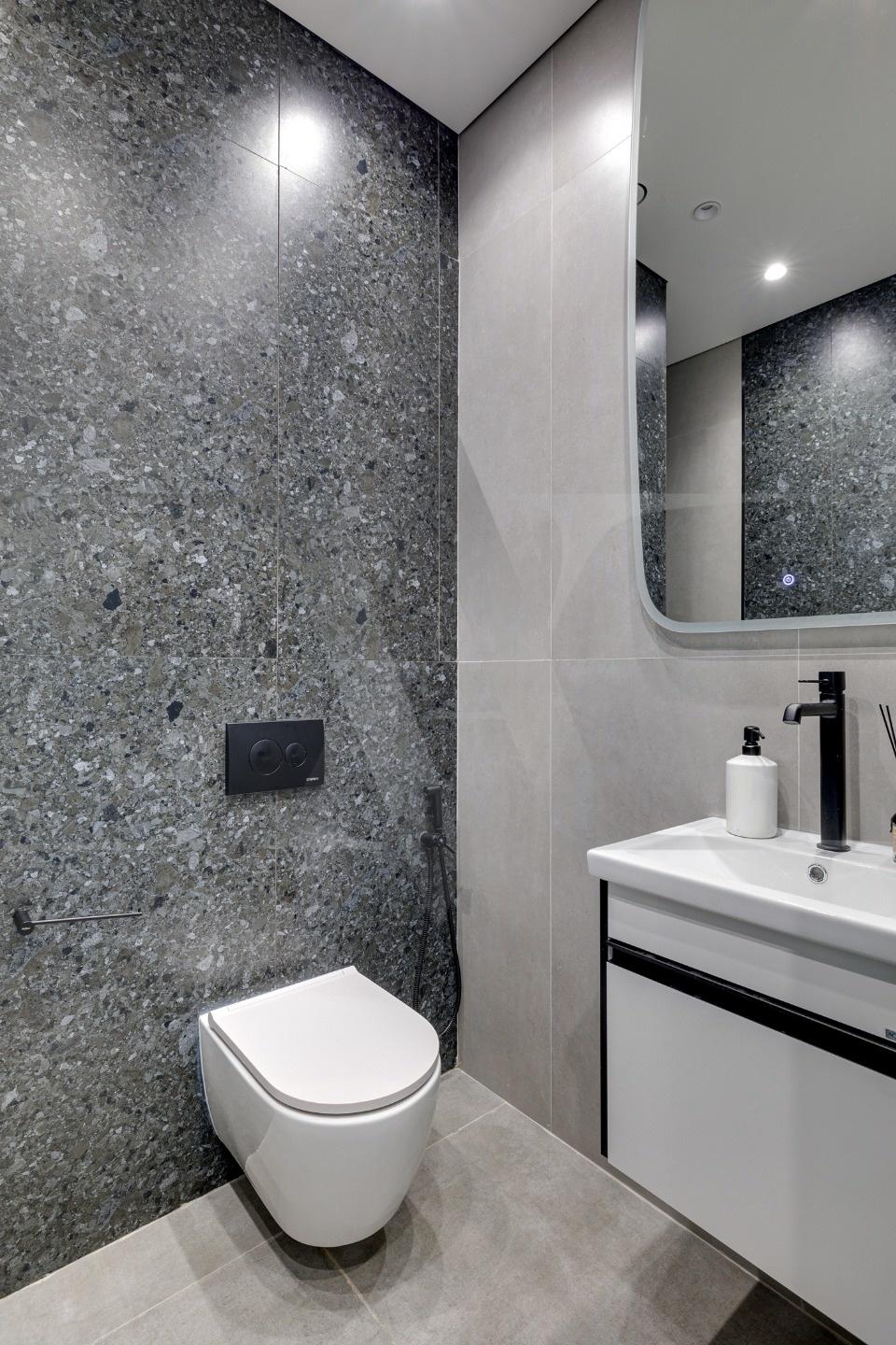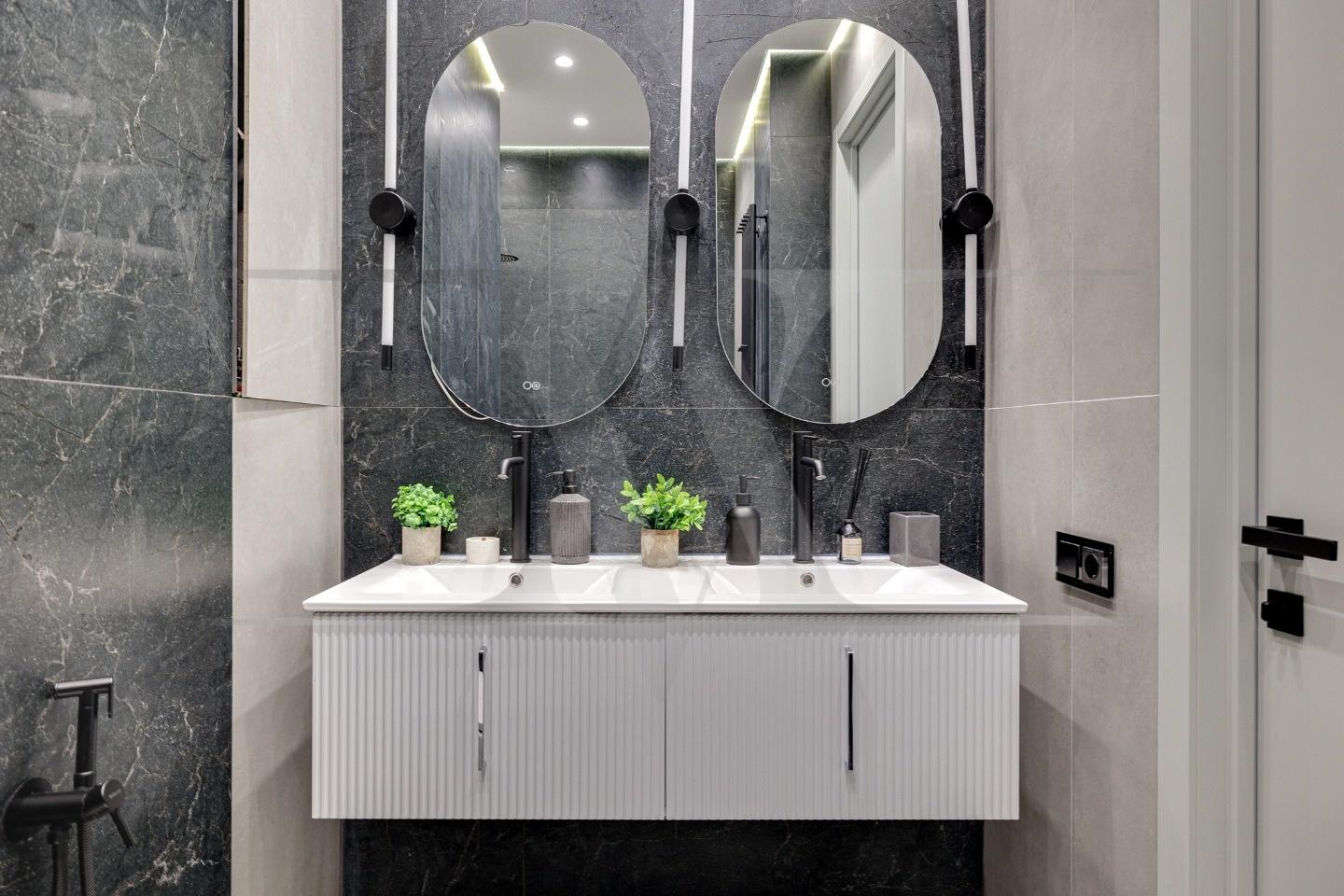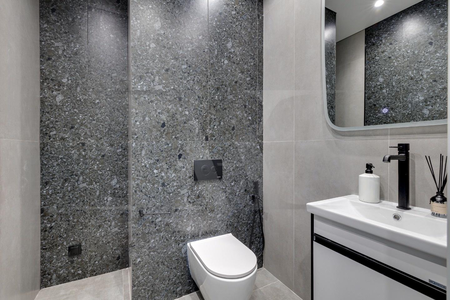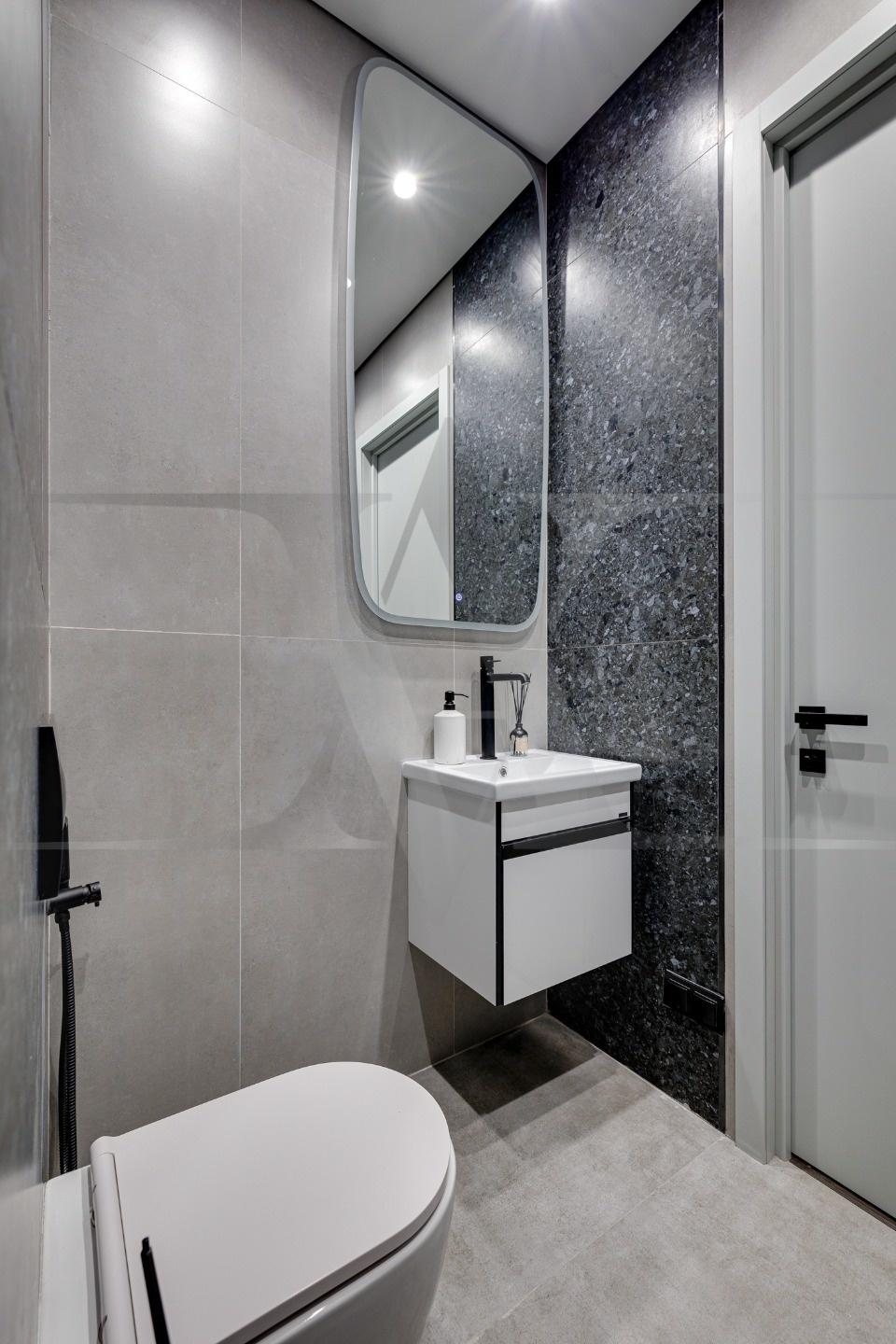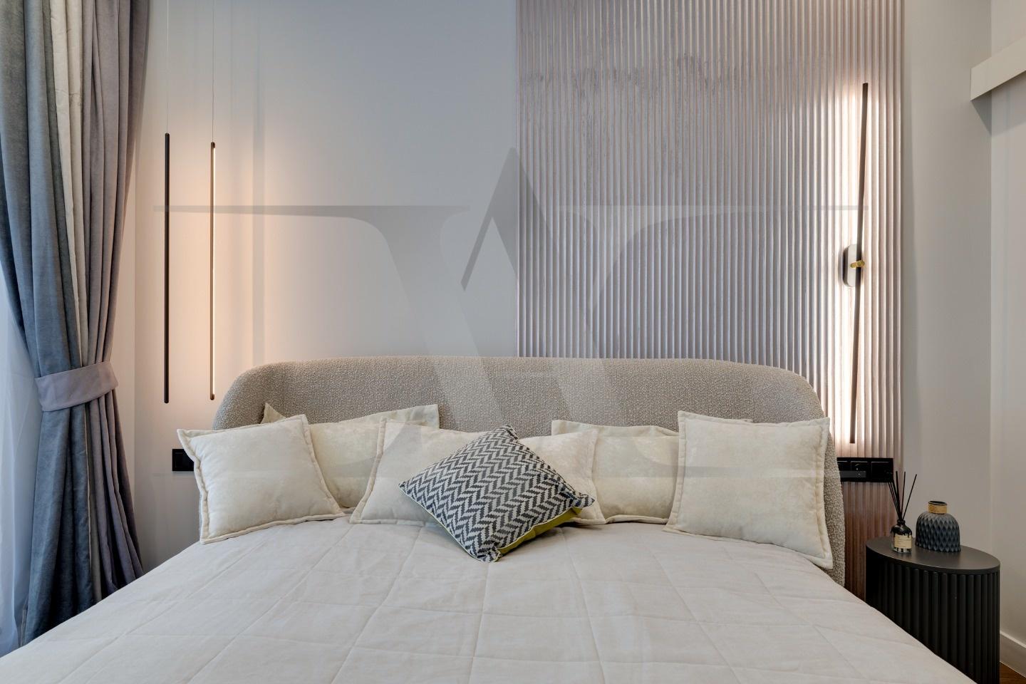 Планировочное решение предусматривает: три изолированные комнаты и кухню-гостиную площадью 30 кв.м., два раздельных санузла, гардеробная. Мебель, техника, кондиционеры, предметы интерьера и текстиля, все входит в стоимость. Бельгийское панорамное остекление.