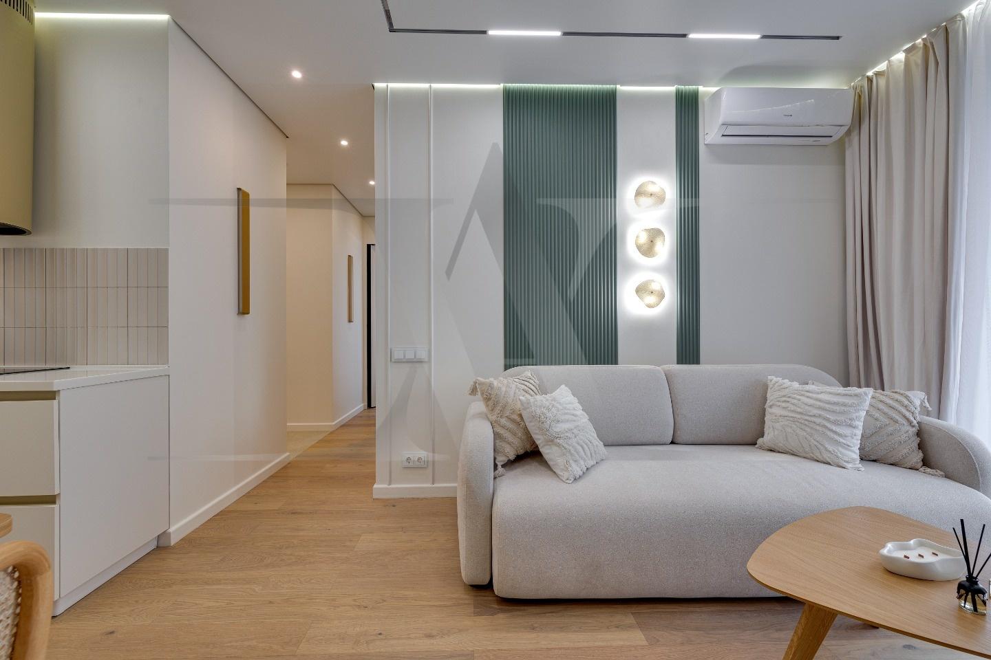 Новая 2-х комнатная квартира с большой кухней гостиной и авторским дизайн-проектом от студии дизайна "Design Alliance". Ремонт квартиры выполнен командой студии «Design Alliance». Начиная от разработки проекта и заканчивая клинингом квартиры всю работу по созданию вашего идеального жилья берет на себя студия дизайна "Design Alliance".