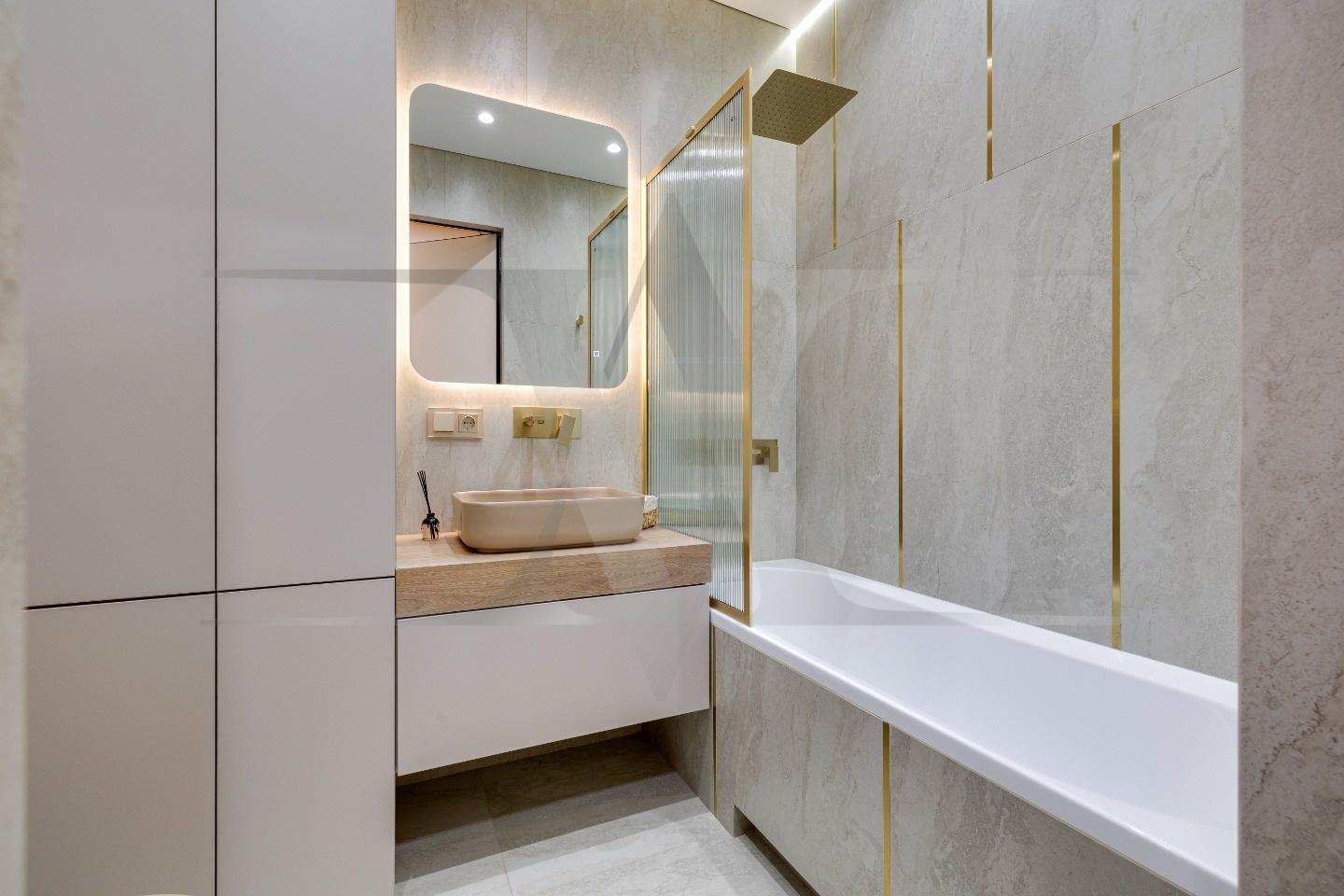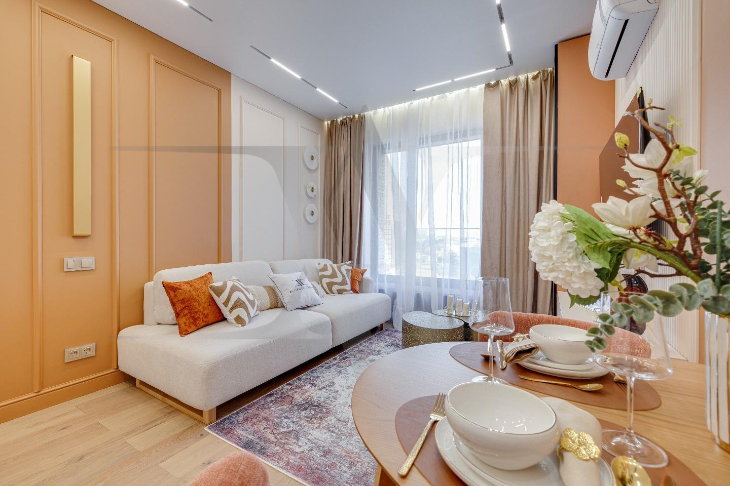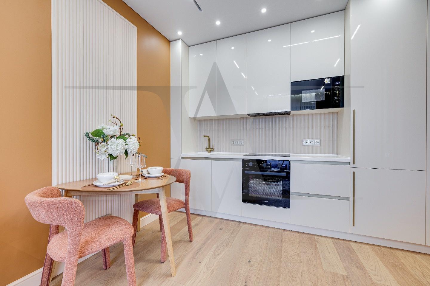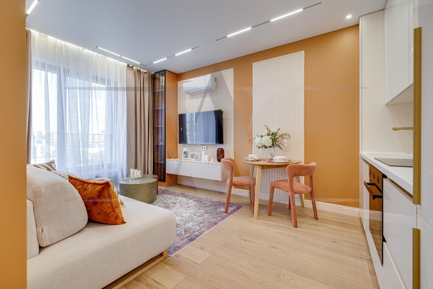 Новая однокомнатная комнатная квартира с просторной кухней гостиной и авторским дизайн-проектом от студии дизайна "Design Alliance". Ремонт квартиры выполнен командой студии «Design Alliance». Начиная от разработки проекта и заканчивая клинингом квартиры всю работу по созданию вашего идеального жилья берет на себя студия дизайна "Design Alliance".
