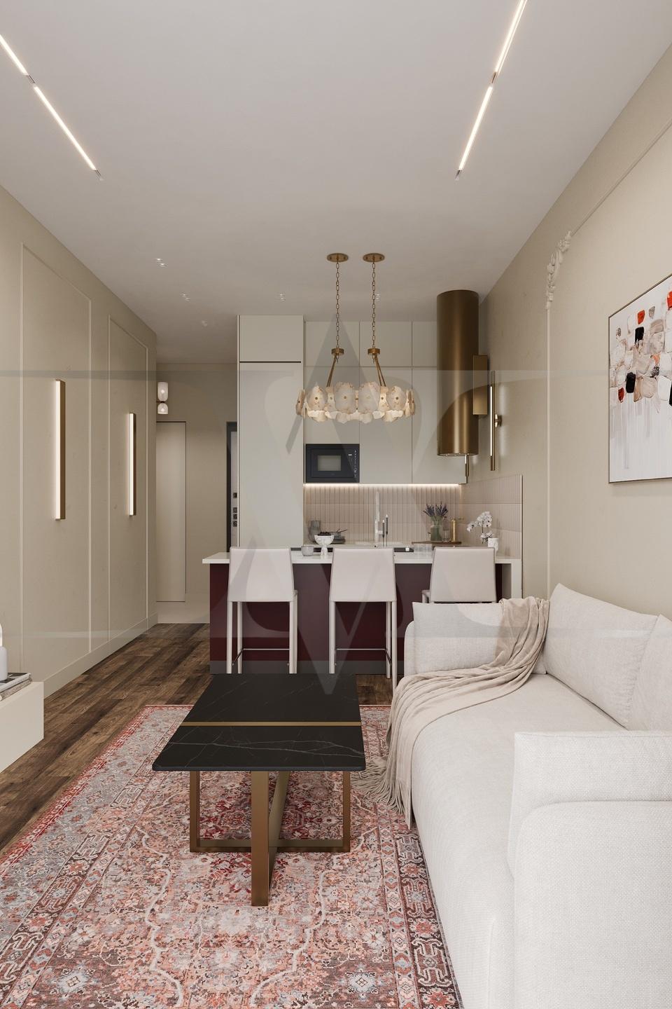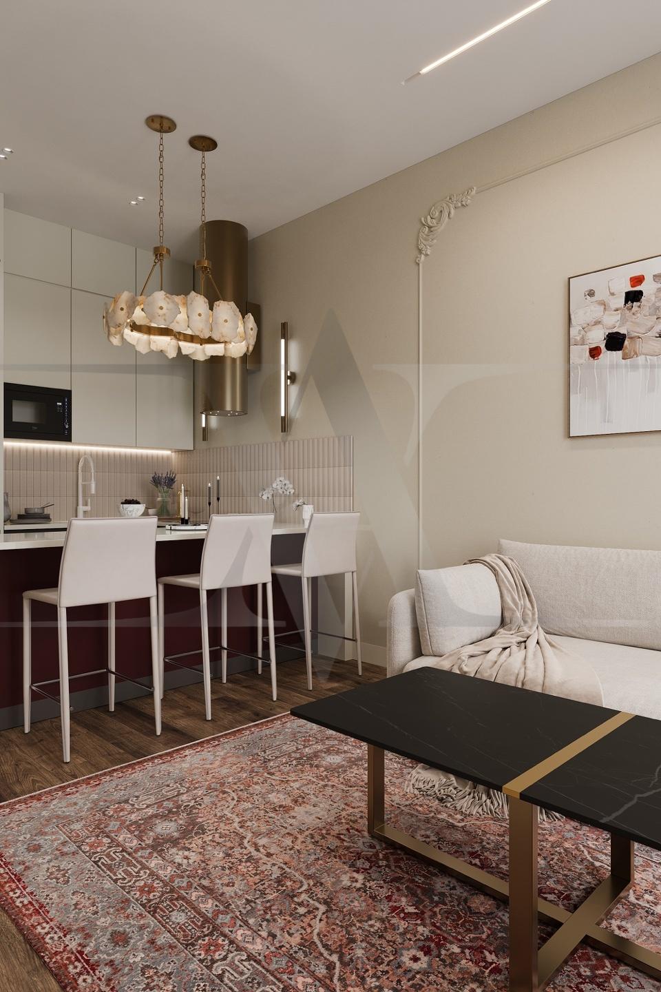 Новая 2-комнатная квартира с большой кухней гостиной и авторским дизайн-проектом от студии дизайна "Design Alliance".