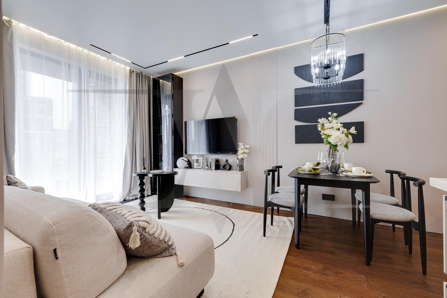Новая 3-х комнатная квартира с большой кухней гостиной и авторским дизайн-проектом от студии дизайна "Design Alliance". Ремонт квартиры выполнен командой студии «Design Alliance». Начиная от разработки проекта и заканчивая клинингом квартиры всю работу по созданию вашего идеального жилья берет на себя студия дизайна "Design Alliance".