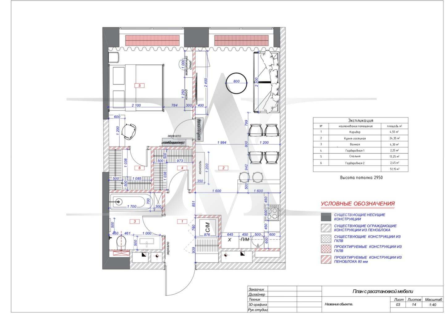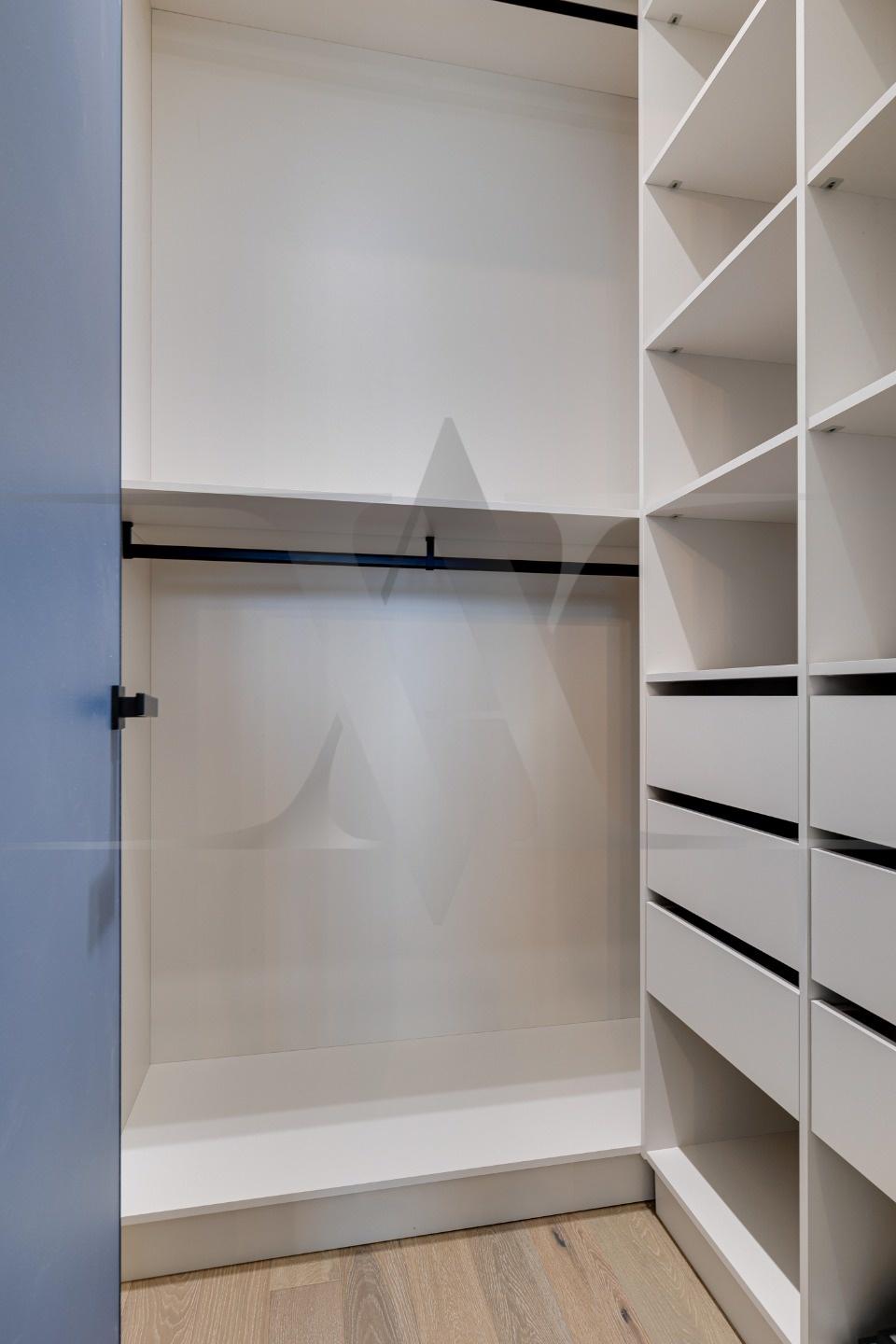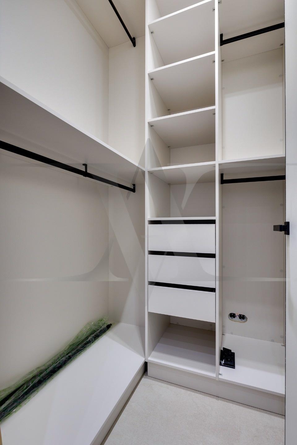 Планировочное решение: кухня-гостиная 25 кв.м, спальня 14 кв. м., совмещенный санузел, 2 гардеробные.