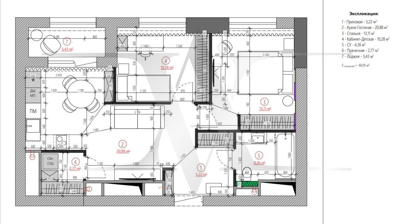 Дизайнерский ремонт квартиры общей площадью 60,05 м2, выполнен командой студии "ALLIANCE DESIGN по индивидуальному дизайн-проекту и с использованием качественных современных материалов.
