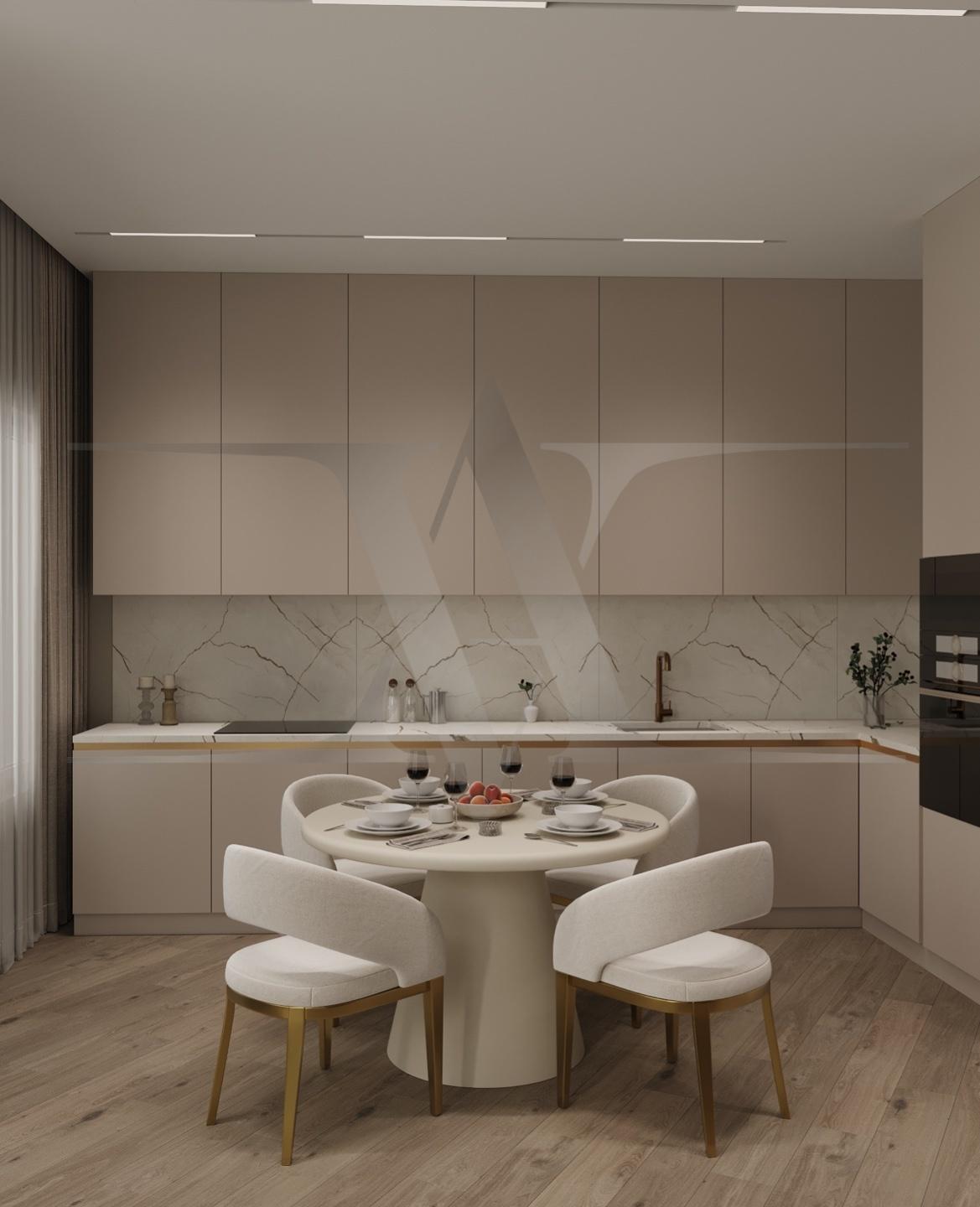Планировочное решение: кухня-гостиная, 2 изолированные спальни два совмещенных санузла, гардеробная.