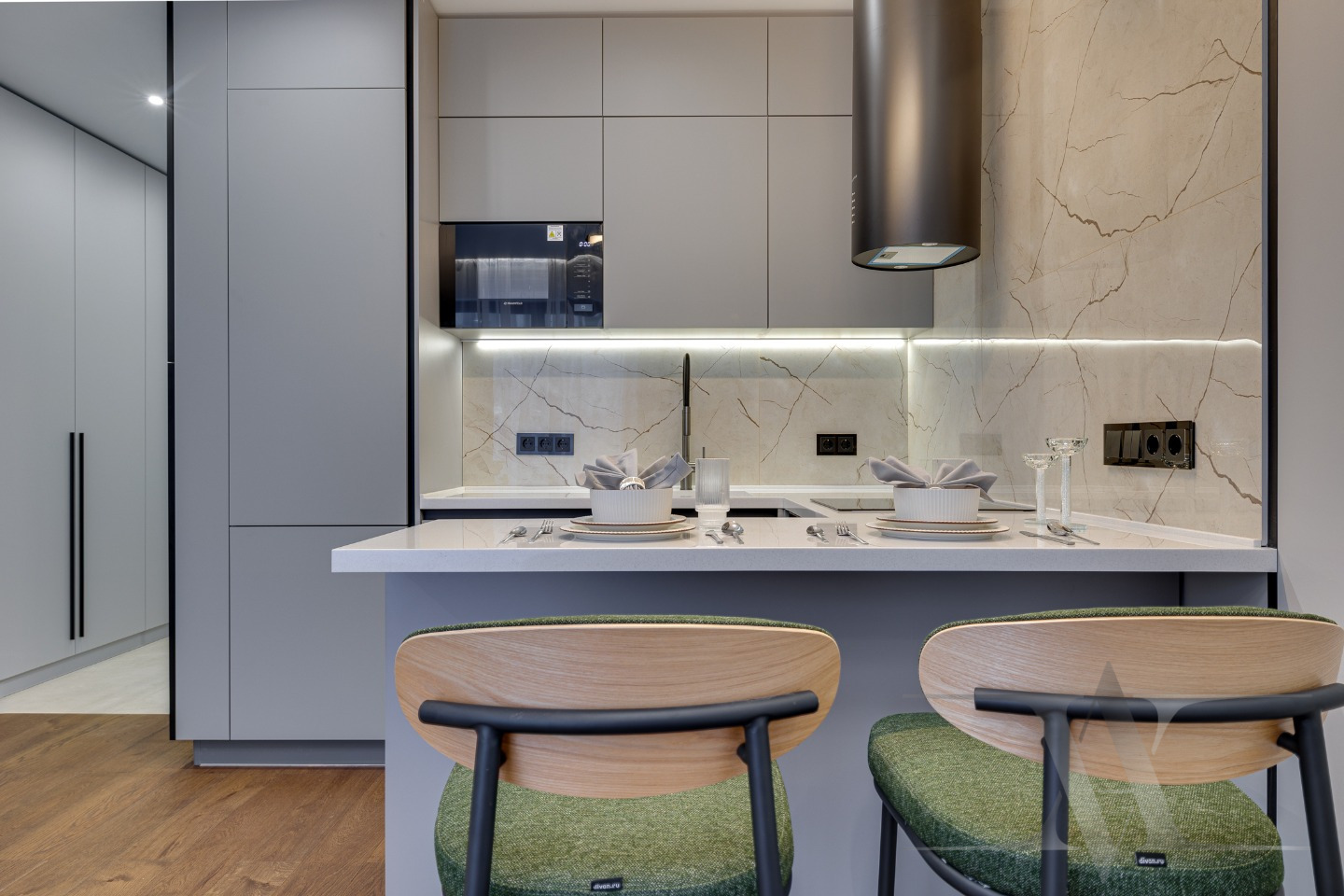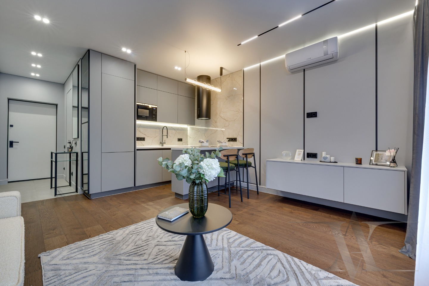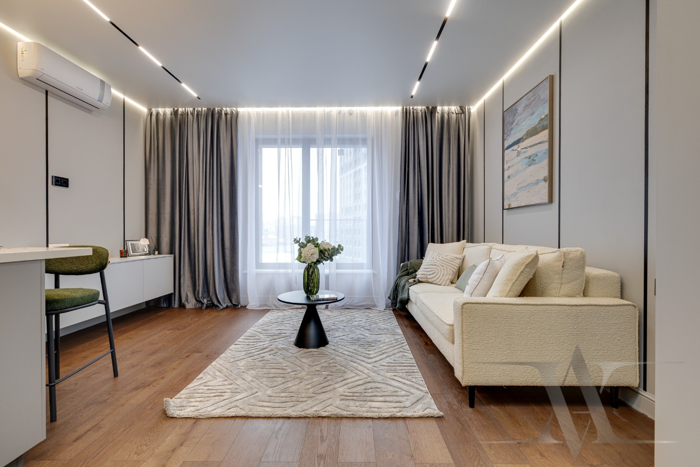 Новая cтудия с просторной кухней гостиной и авторским дизайн-проектом от студии дизайна «Design Alliance». Ремонт квартиры выполнен командой студии «Design Alliance». Начиная от разработки проекта и заканчивая клинингом квартиры всю работу по созданию вашего идеального жилья берет на себя студия дизайна «Design Alliance».