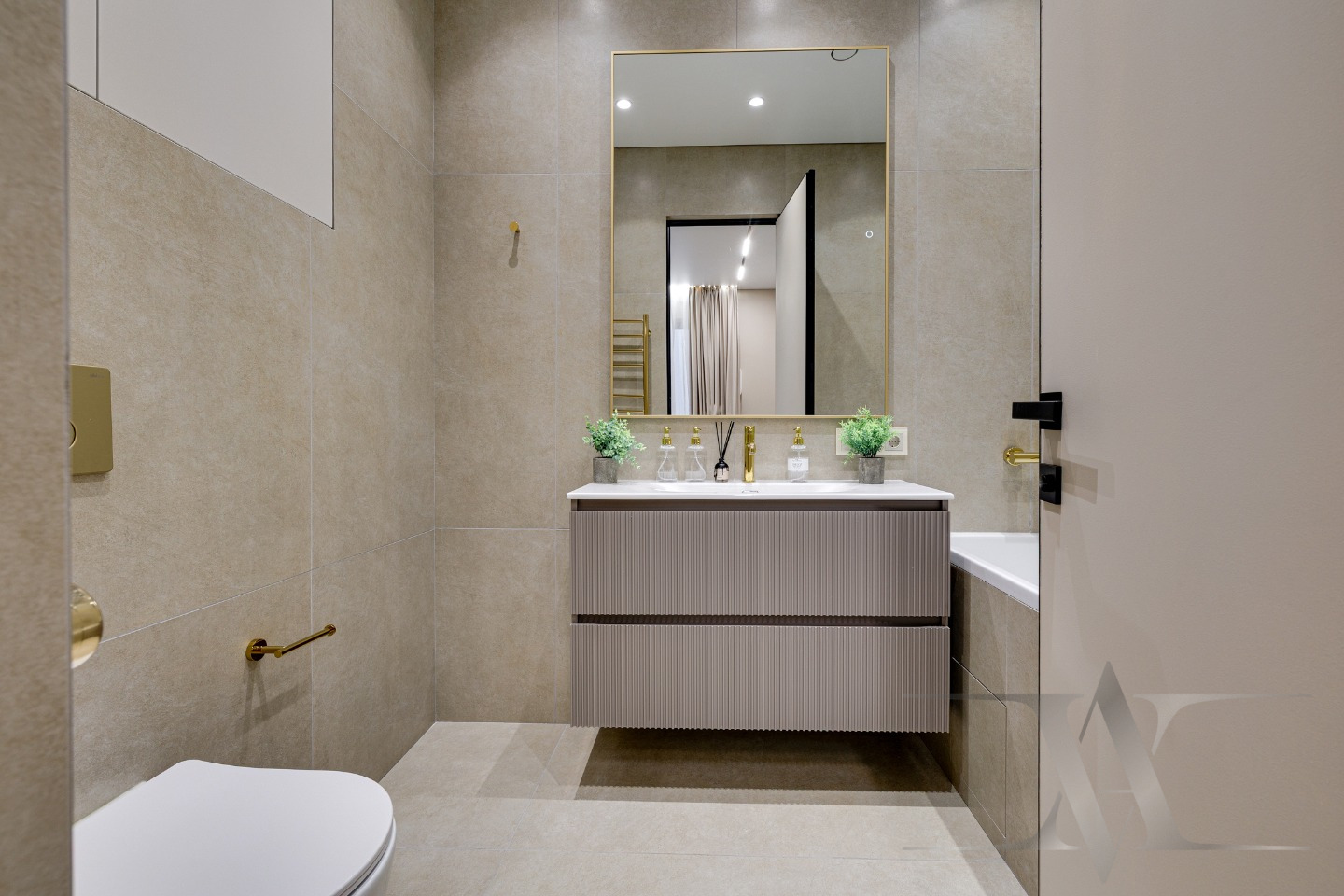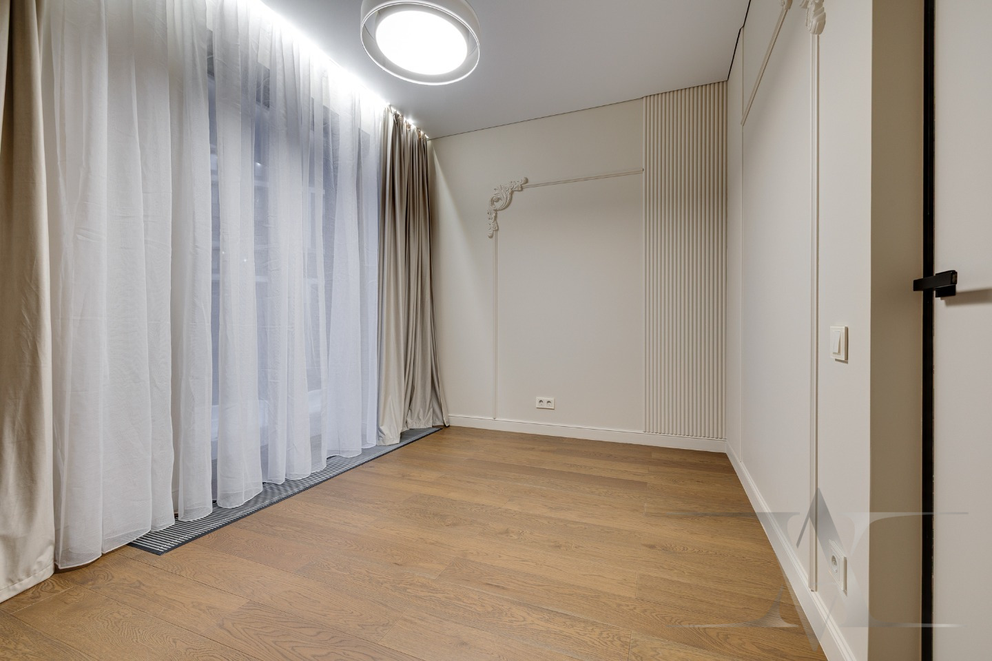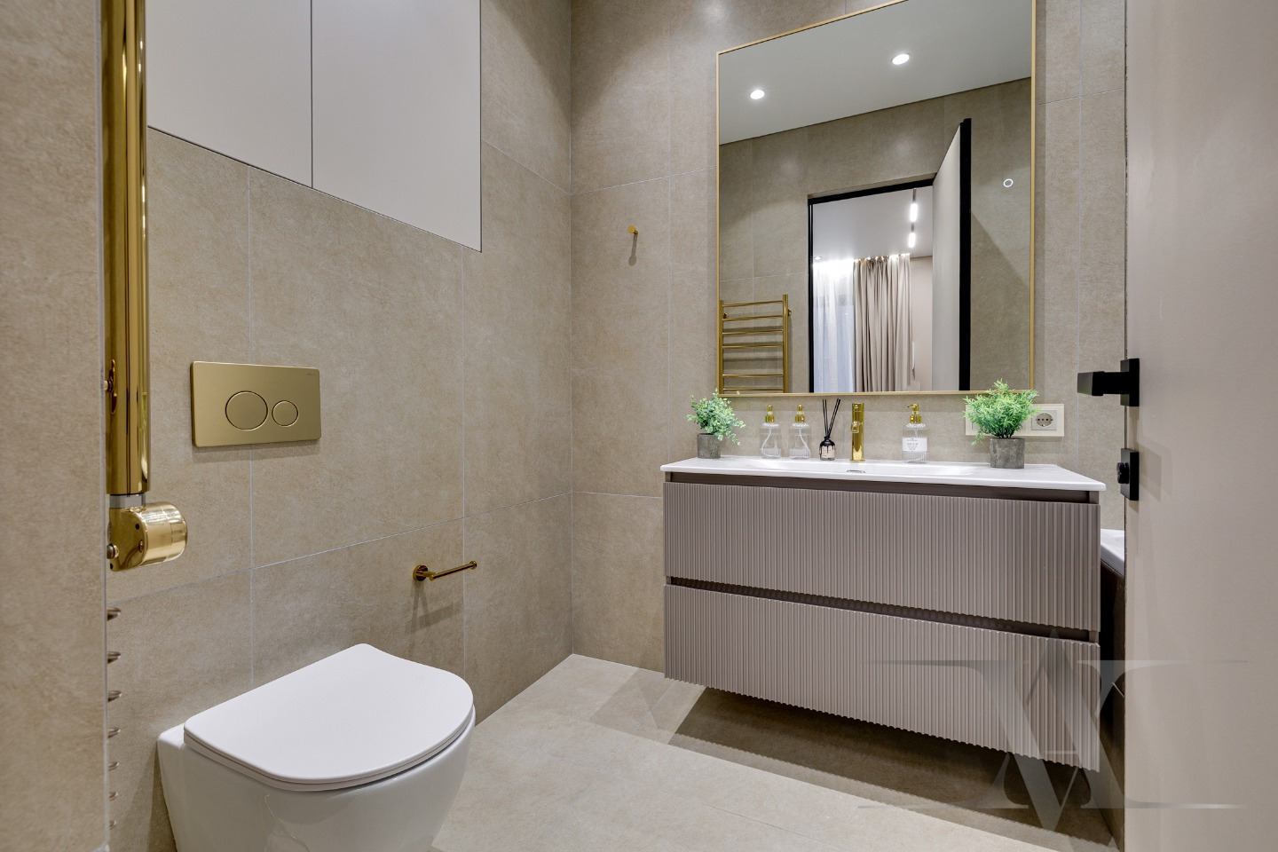 Квартира с новой мебелью, кухонным гарнитуром и техникой. Планировка: кухня-гостиная, три изолированные спальни, два санузла. Высота потолков 3 метра.