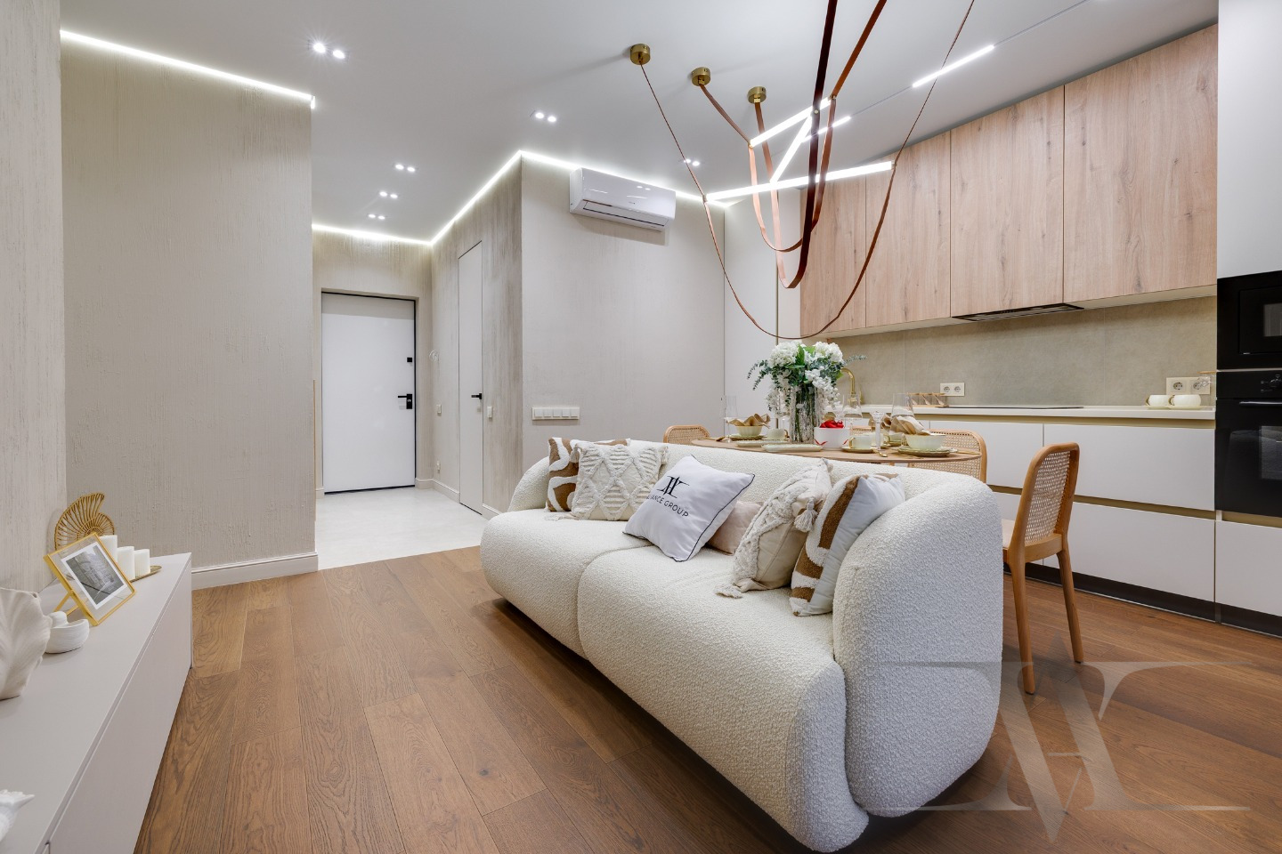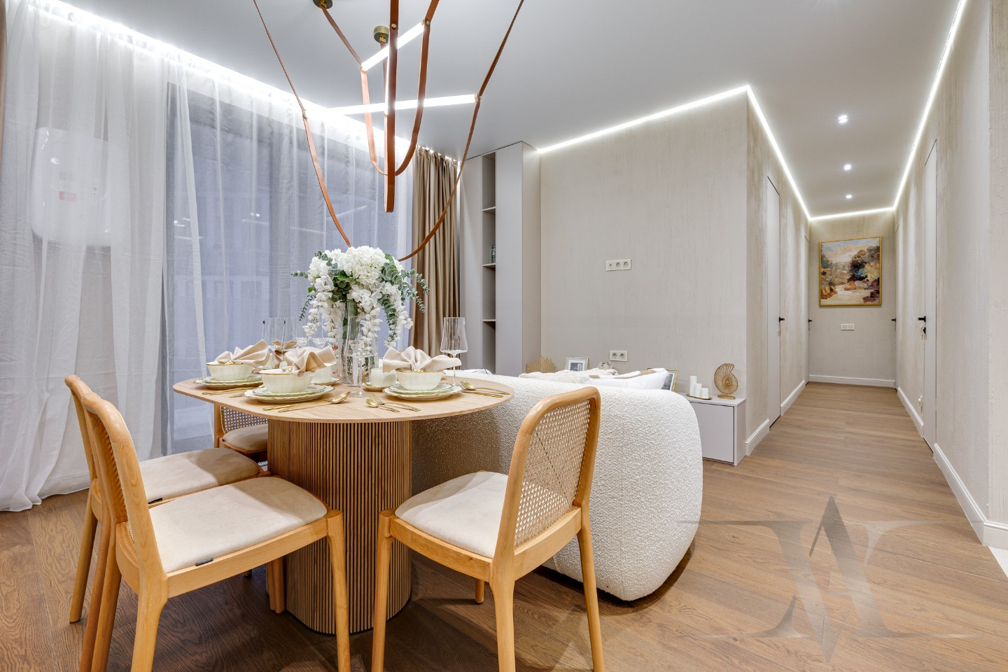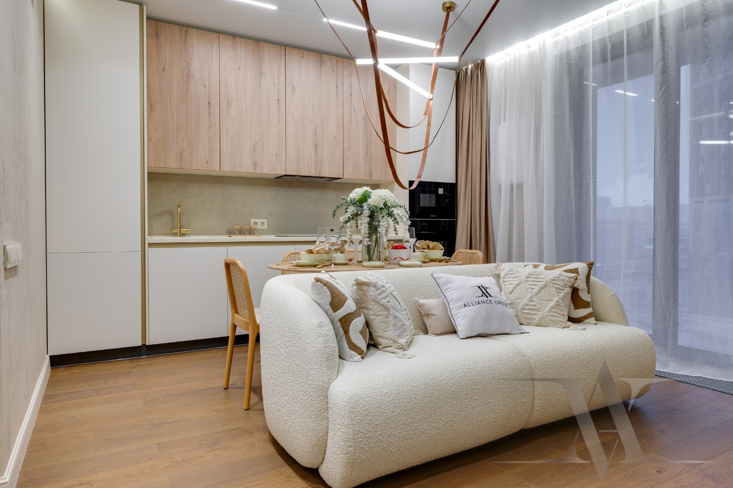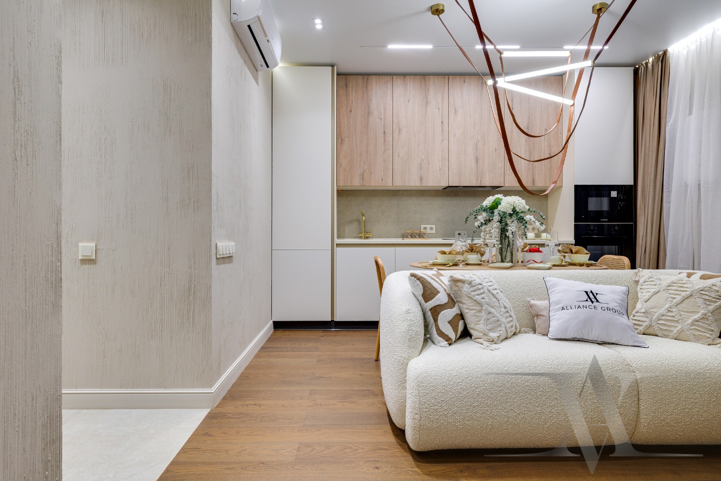 Новая 4-х комнатная квартира с большой кухней гостиной и авторским дизайн-проектом от студии дизайна «Design Alliance». Ремонт квартиры выполнен командой студии «Design Alliance». Начиная от разработки проекта и заканчивая клинингом квартиры всю работу по созданию вашего идеального жилья берет на себя студия дизайна «Design Alliance».